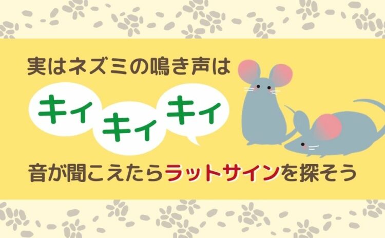 また、ネズミ算ということばがあるように、ネズミは繁殖力がとても高いので赤ちゃんがいる可能性もあるでしょう。ネズミの赤ちゃんの鳴き声は、小さく少し高めの声で「キューキュー」と聞こえます。