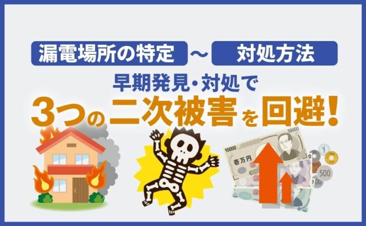 漏電することによって起こるリスクには、大きく「火災・感電・電気代の高騰」という3つの二次被害があげられます。これらの二次被害を防ぐためには、なるべく早く修理だけでなく、漏電を起こさないための対策も必要です。3つの二次被害と一緒に、それぞれの対策についてもご紹介していきます。