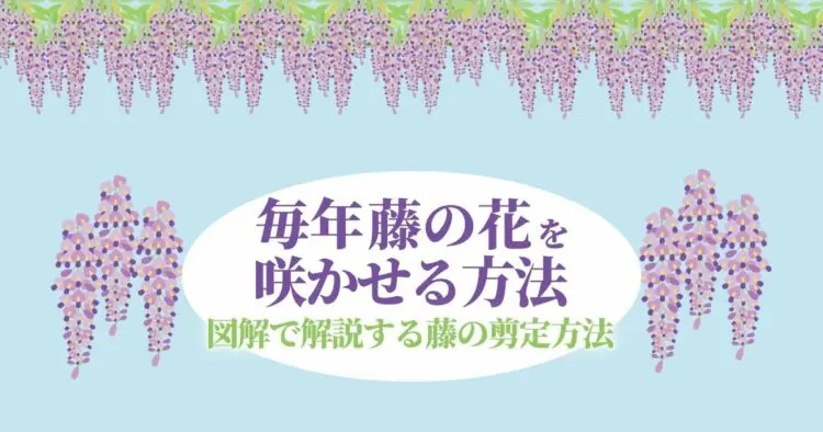 もしも、「今すぐ藤の具体的な剪定方法が知りたい」という方は、「夏の季節におこなう剪定方法」「冬の季節におこなう剪定方法」にてイラスト付きで解説していますので、そちらをご覧ください。