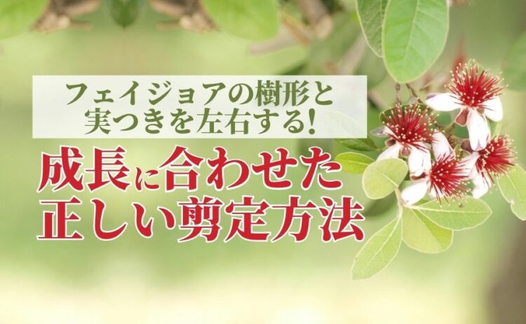 その理由は、苗木の小さい1~2年目は樹木の成長のため、樹形の整ってきた4~5年目以降は果実をつきやすくするためと剪定の目的が異なるからです。成長に合わせた適切な剪定をおこない、フェイジョアの美しい花とおいしい果実を楽しみましょう。