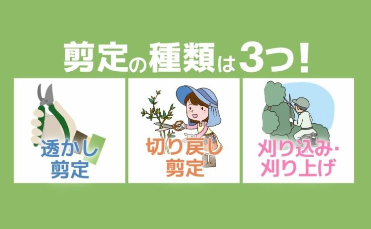しかし、剪定はどのようにおこなえばよいのか分からない方もいらっしゃるかと思います。剪定をしたことがないという方は、代表的な3つの剪定方法を覚えておきましょう。