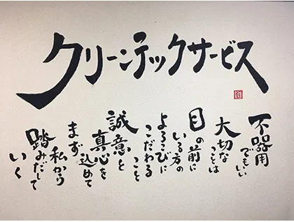 株式会社クリーンテックサービスの理念は「不器用でもいい。大切なことは目の前にいる方のよろこびにこだわること。誠意を真心を込めて、まず私から踏み出していく」というもの。