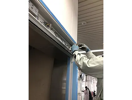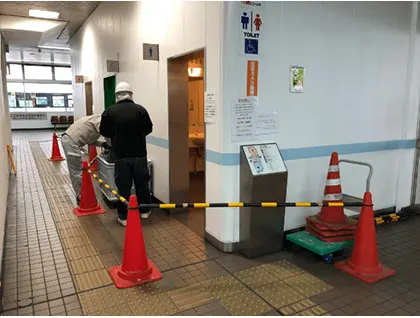 今回は「屋内の扉のないトイレに自動ドアを2台新設したい」とお客様からご依頼をいただきました。施設内の、扉自体ない男女トイレに、衛生面と防犯の観点から自動ドアを設置したいとのことでサッシ枠を組み、自動ドア装置の設置をいたしました。 広い施設でしたので、常時、施主様方が見える所に居ませんので、作業中の他トイレへの誘導、作業しない時間帯の安全性を確保することが重要でした。地面のハツリ作業から始まり、電気工事、サッシ枠を組み、自動ドア装置を設置、地面の補修、タイル貼りで仕上げました作業工程は3日です。 作業中は職人さん達に、安全と施設利用のお客様への配慮を徹底させ、貼紙を複数個所に設置し、周知徹底しました。3日間とおして無事に終えることができてホッとしています。 新設工事、改修工事、修理、メンテナンス、自動ドアに関する事は是非ご相談ください。