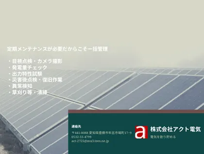愛知県豊橋市に拠点をおく株式会社アクト電気では、電気工事を承っています。電気設備の設置やトラブルなどがありましたらご相談ください。詳しいサービス内容は以下の通りです。