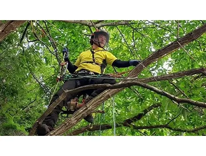 ロープワークと木登りを組み合わせた技術での特殊伐採で、どんな場所でも伐採しますので、お気軽にご相談ください。