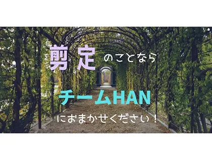 弊社スタッフより私は長年この仕事をやってきました。駆け出しの頃は、先輩の作業を見て必死で真似して覚えていました。今では、お客様からの沢山のご依頼のおかげで、剪定の知識と技術は誰にも負けないという自信が持てるほどになり、この経験を活かせるように、これからも多くのお客様のご依頼に応えられるよう努力していきたいと考えていますので、剪定が必要になった際には、是非チームHANにご依頼ください。