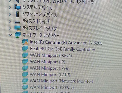 お客様のプライバシー保護のため記載内容が事実と若干異なります。 週末夜に「ネットに急に繋がらなくなった。パソコンで急用が有るので見て欲しい」とお電話です。 無線LAN接続だそうで無線ルーターの再起動を試していただいのですが改善せず出動です! PCはNECのノートPC LL750/Jで元はWindows8をWindows10にアップグレードされてます。 拝見すると無線LANが使用できずでデバイスマネージャで調べるとネットワークアダプタの『Intel Centrino Advanced-N 6205』がビックリマークになってます。 これは他のお客様案件でもありましたが、最近のWindows10の更新でこのネットワークアダプタが無限ビックリマークになる案件です。 一端有線でネット接続してこのアダプタを再インストールしたらネット接続出来るようになるのですが、PCを再起動したりシャットダウンすると再度ビックリマークになりネット接続不可となります。 これはUSB子機タイプの無線アダプタで代替するか有線接続するしかありません。 時間も時間なのでショップも開いて無く、無線はお客様に再考していただいて取り敢えず手持ちの有線LANケーブルをお譲りして解決する事に。 しかし手持ちがクロスケーブル5メートルしか持ち合わせが無くて(その他には30メートルの高価なきしめんケーブルしかない)動作確認してお譲りしました。 「そろそろこのPCも寿命ですか?」とお尋ねでしたがCPUはCore i5で8GBもメモリー積んでますしまだまだ現役です。 HDDも診断ソフトで調べたら正常動作してますので後2年は大丈夫そうです。 無線LANはある日突然切れたりしますので有線LANケーブルを常備しておくと安心です。100円ショップでも売ってますので。 かく言う自分もストレートケーブルの予備を用意し忘れていましたので反省です。 ご利用ありがとうございました。