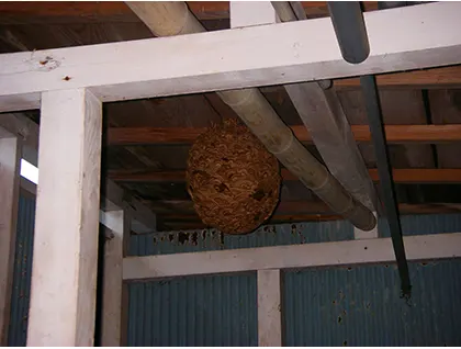 家の離れの小屋に大きなスズメバチの巣を発見。大きいハチも飛び交っておりました。子供たちには危険なので近づかないように注意してても好奇心旺盛で目を離すと見に行く始末。何か起こってからでは遅いので、早速業者さんに駆除のお願いをしました。これで子供たちも自由に遊ばせることが出来ます。ありがとうございました。